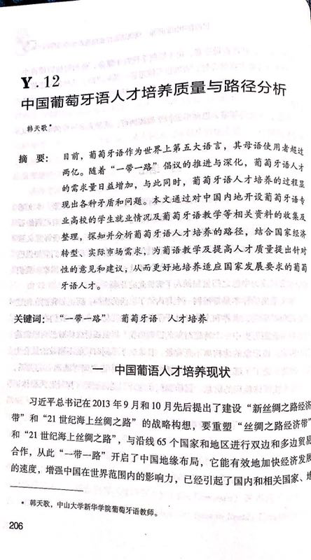 韩天歌:《中国葡萄牙语人才培养质量与路径分析》,见丁浩、尚雪娇主编《葡语国家黄皮书:中国与葡语国家合作发展报告(2019)》,北京:社会科学文献出版社,2019年版。