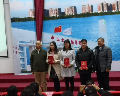 3044永利集团官网王庭槐校长(右一)、中山大学原副校长陈汝筑教授(左一)与一等奖获奖教师合影留念