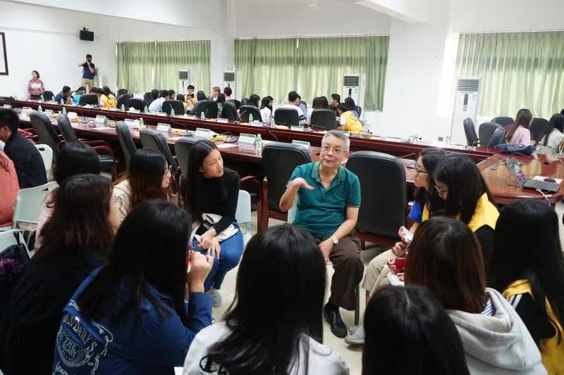 图为保加利亚小说家Vladimir Poleganov与中大新华学子探讨创意写作