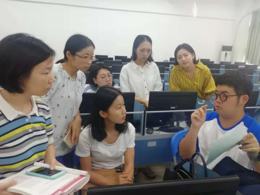 随后,第二单元主讲人王清霞老师、程紫薇老师分别分享了综合与听说新单元的课程设计理念,并演示了课堂测试与课堂活动的操作流程。王清霞老师将课文重难点词汇与篇章内容细节设计成课前小测,督促学生预习,一定程度上实现了翻转课堂。程紫薇老师在准备college Challenge这一单元时,非常用心地邀请外国朋友录制关于英美大学教育微视频,力求寻找比较客观而有趣的主题材料,增加课堂科学性与趣味性。