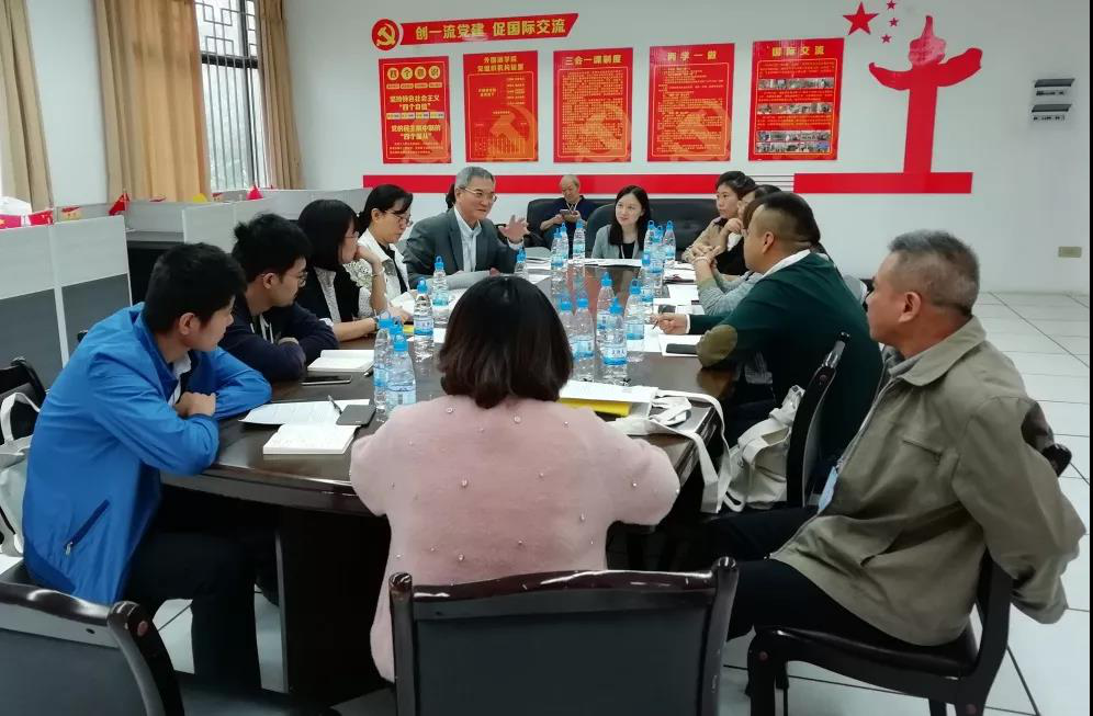 图为林杏贞老师(左二)与常福良教授(右二)分组讨论现场合影