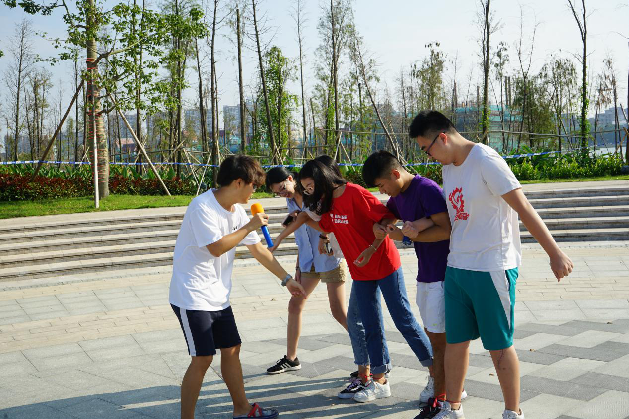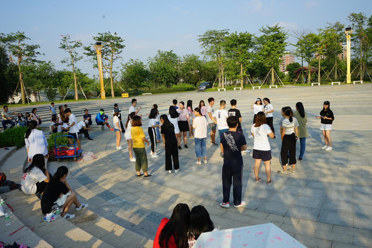 怀着愉悦的心情,各组织干事们一同抵达活动场地--美丽的华阳湖公园。在主持人的组织下,各组织干事们随机均分为8组。随后,主持人详细介绍游戏项目及规则。据介绍,素拓共设4轮游戏,游戏结束将评选出前三名,颁发小礼品。