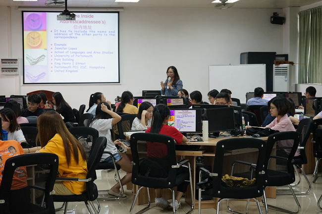 值得肯定的是,尽管到了开学第一周的最后一个教学工作日(周五),外院的任课老师和学生依然能做到提前到达课室进行课前准备。授课老师精神饱满,热情授课,创新教学模式;学生聚精会神,认真听课,积极回答问题。