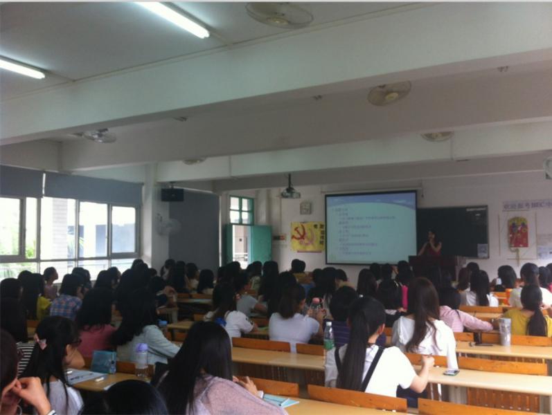 2013年10月16日 8:30分,外语系英语专业在广州校区教学楼B 402召开2010级毕业论文动员大会。外语系主任廖益清副教授、曹金蓉老师、欧衍伽老师和辅导员许换老师出席本次会议。