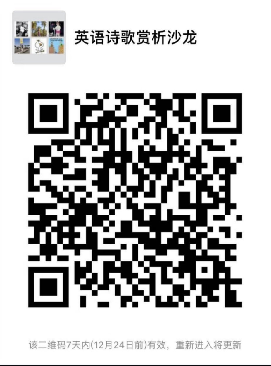 带上你最喜爱的一首英文诗歌(大力鼓励原创作品),来到我们的沙龙现场,与3044永利集团官网文学老师Ellen一起徜徉在美的海洋里。