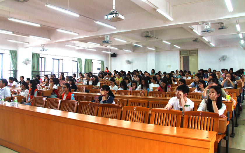 当讲到翻译过程中遇到的特殊情况以及一些注意事项,欧阳教授以几句古代诗词文言翻译为例,强调在翻译过程中一定要注意联系上下文,彼此融会贯通才能真正了解文章的思想以及观点。为了提高翻译能力,在阅读翻译文章的时候,翻译学习者可以带着批判性的思维来欣赏,抓住自己与文章译者观点有何不同,借鉴他人的翻译技巧,从而达到提高翻译水平的目的。同时,欧阳教授一针见血地指出,现今很多国内所谓的英语“大牌”翻译,翻出来的东西都只是给国人看,很少有让母语为英语的外国人拜读、评价,以致根本没有达到翻译真正的目的——让母语为目的语的人群能够理解文章传达的内容。欧阳教授提醒同学们,汉译英要遵循英语为母语的人的思维,译文力求地道,符合英语语言的表达习惯。