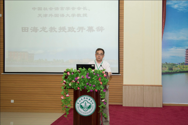 中国社会语言学会会长、中国英汉语比较研究会话语研究专业委员会副会长兼秘书长田海龙教授作题为“全球化背景下的社会语言学研究与创新发展”的学术报告