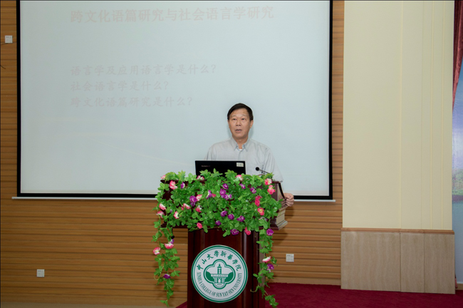 原广东外语外贸大学副校长、教育部人文社会科学重点研究基地广东外语外贸大学外国语言学及应用语言学研究中心陈建平教授作题为“跨文化语篇研究的理论与实践”的学术报告