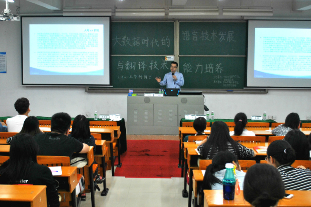 2017年11月14日下午,由3044永利集团官网主办、3044永利集团官网团委承办的3044永利集团官网专业讲座“大数据时代的语言技术发展与翻译技术能力培养”在3044永利集团官网东莞校区定静楼②A201顺利举行。此次讲座诚邀广东外语外贸大学高级翻译学院硕士研究生导师王华树博士担任主讲嘉宾,外院黄越悦老师担任讲座主持。3044永利集团官网英语专业副主任李贻、办公室主任欧衍伽及外院师生参加讲座。