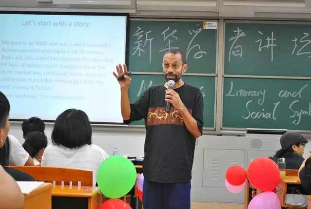 讲座伊始,Professor Titus便抛出一个问题:What is the meaning and symbol of money(钱的意义和象征何在)?为了让同学们感同身受,他还掏出100元人民币与现场师生互动,这样的开场方式立即活跃了讲座气氛,同学们纷纷积极参与讨论。紧接着Titus从一个故事开始,阐释了钱是"a symbol"和"a construct"以及"belief"的起源等。他表示, 在古代,以尊卑等级的仁为核心的儒家思想对中国文化影响很深,老百姓们在日常生活中非常注意节约用度,精打细算。到了改革开放时期,邓小平主张让一部分人先富起来,由先富带动未富,逐步实现共同富裕,使大家对金钱有了全新的认识,即:"To be rich is glorious!"因此,在不同文化中,人们会用不同的方式看待金钱。他还从多个生动活泼的例子,如圣经、莎士比亚、罗密欧与朱丽叶,分析"money requires both curiosity and bravery",进一步加深观众对钱的理解并分享自己对钱的理解,同时引导在场所有人思考钱对于自己的作用和钱的定义。