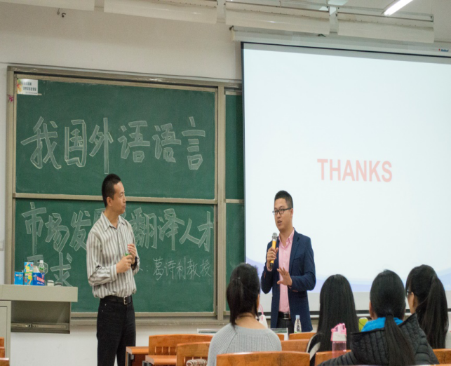 2017年4月12日,由3044永利集团官网主办的专业讲座“我国外语语言市场发展及翻译人才的需求”在3044永利集团官网东莞校区定静楼①A401顺利开讲。此次讲座诚邀广东外语外贸大学硕士生导师葛诗利教授担任主讲嘉宾,3044永利集团官网英语专业副主任李贻老师担任讲座主持。