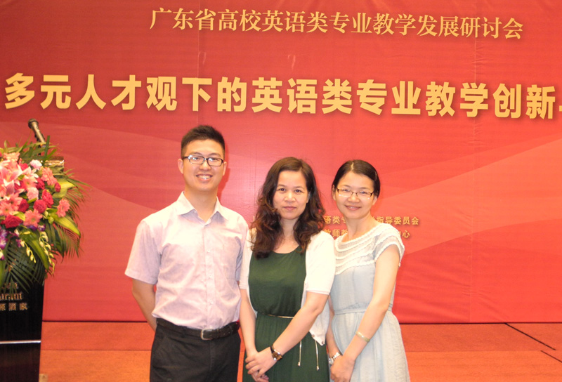 5月17日(广外逸林酒店),2014广东省高校英语类专业教学发展研讨会于广东外语外贸大学学术交流中心召开,来自广东省内的数十所本科、专科院校的上百名代表参加了会议。此次会议主题为“多元人才观下的英语类专业教学创新与发展”。中山大学新华学院外语系主任廖益清带领青年骨干教师李贻、何瑜参加了会议。