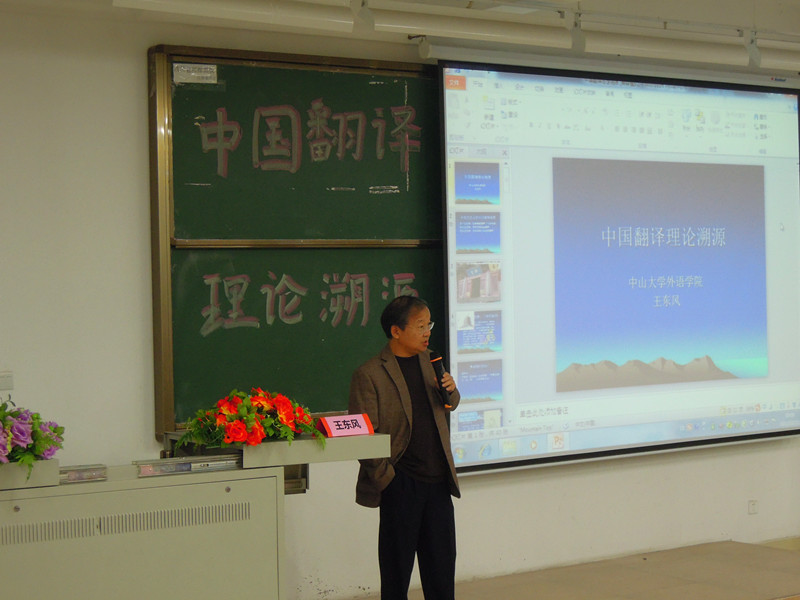 12月13日晚,3044永利集团官网第七届校园文化艺术节“人文艺术研究新视觉”系列文化讲座之“中国翻译理论溯源”在东莞校区教学楼①D301顺利开展。本次讲座有幸邀请到中山大学3044永利集团官网教授、中山大学翻译学院常务副院长和翻译研究中心主任,中国英汉比较研究会常务理事王东风教授做主讲嘉宾,给同学们带来一场精彩纷呈的文化盛宴。此次讲座吸引外国语言文学系的大部分青年教师与同学们前来聆听,共享这难得的文化盛宴,整个现场座无虚席。