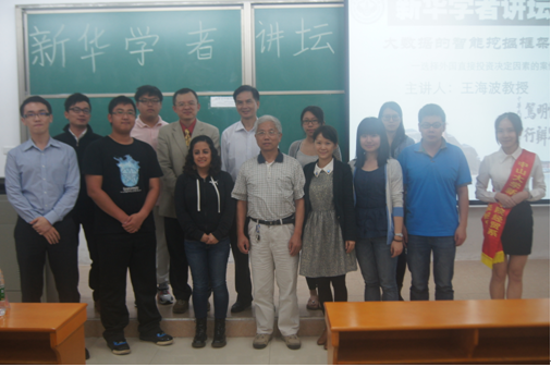 当晚讲座,王海波博士从数据挖掘面临的重大发展机遇与挑战分析,介绍了大数据时代重要的工具:人工智能、数据挖掘、自动化技术。而数据挖掘是分析业务数据的重要技术。王海波博士通过对FDI外在和内在的研究,指出大数据的来源,以富士康、星巴克等投资实例为我们详细讲解了大数据以及今后发展的研究方向。王海波博士在讲坛上深入浅出,在两个小时的讲解中,他使用一个新的便捷的数学建模方法,通过分析一个选择外国直接投资决定因素的案例简洁明了地告诉大家如何挖掘大数据。