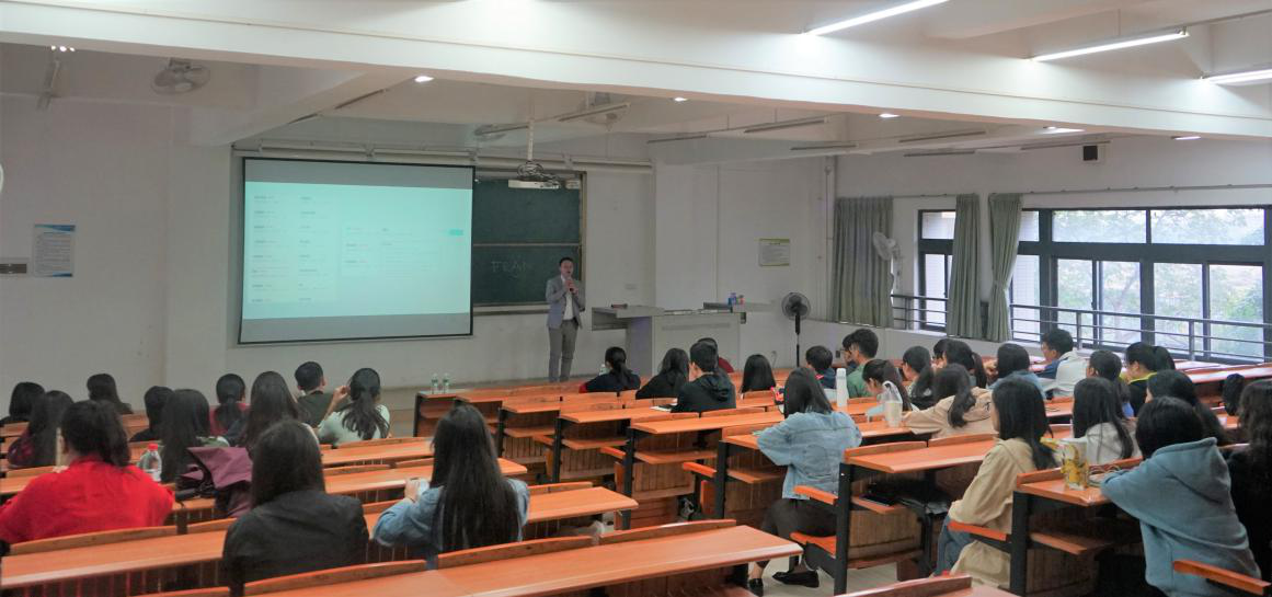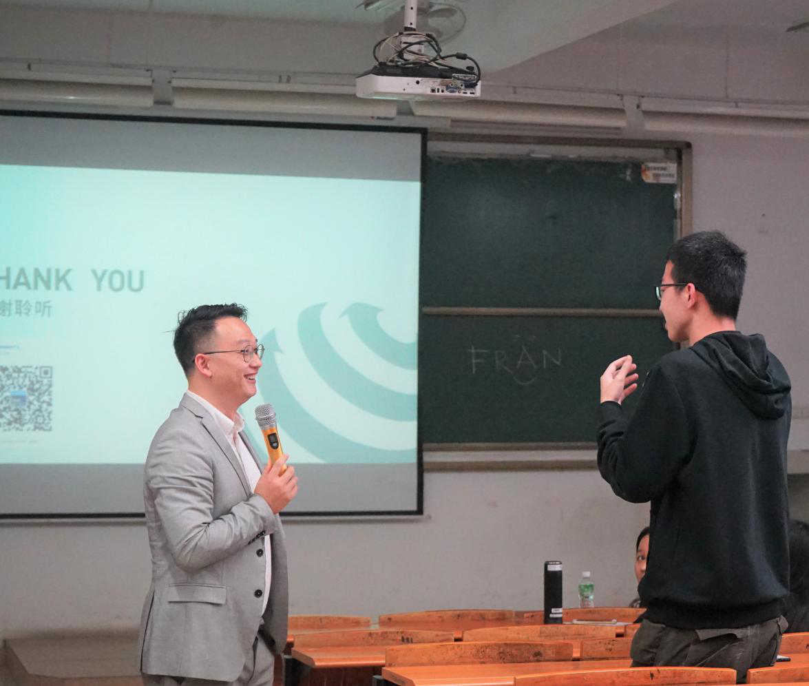 随后,吴建鹏先生针对如何更好地提高翻译素养这一话题与在座师生展开讨论。他将讨论分成四个部分:翻译行业的概况;HR眼里的外语专业毕业生;如何开始自己的翻译职业生涯以及除了从事翻译外语人还有哪些出路。