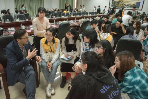 西班牙作家Ignacio Vleming就中西方姓名差异和蕴含的不同文化与同学们进行了热烈的探讨。Ignacio Vleming认为,诗歌是“视觉上的艺术”,而艺术与文学是相互影响的,通过与同学们的交流对中国文化有了更加深刻的了解,希望能与同学们保持联系,将这份珍贵文学情谊延续下去。