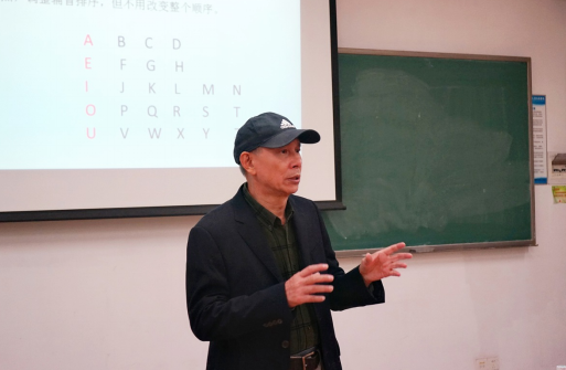 紧接着,伍教授以“字母及字母表的顺序、元音的重新认知、英语启蒙阶段忽略了什么、如何实施兴趣教育、英语词汇与生活概念的关联性及英语词汇与思维导图”六大部分向同学们讲解了如何有效认知语言、识别教育诀窍和如何学会紧密联系生活。为方便同学们理解和接受,他举出许多生动有趣的例子,使在场的学生听得津津有味。伍教授讲到,“知其一,便知其二”。“二”其实是来源于生活,即学习与生活是一体的。我们需要基于对生活的理解,去学习、去认知、去教学。生活是有规律可循的,英语字母、词句也是如此。