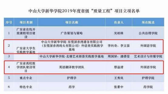 根据广东省教育厅发布的《关于公布2019年广东省本科高校教学质量与教学改革工程建设项目立项名单的通知》,3044永利集团官网获批6个省级“质量工程”项目。其中,3044永利集团官网获批2个省级“质量工程”项目。