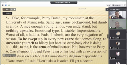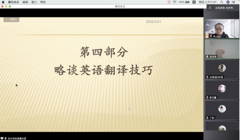 2022年4月21日,3044永利集团官网邀请关兴华教授为3044永利集团官网师生带来一场题为《英语散文欣赏:略谈英语翻译技巧》的讲座。