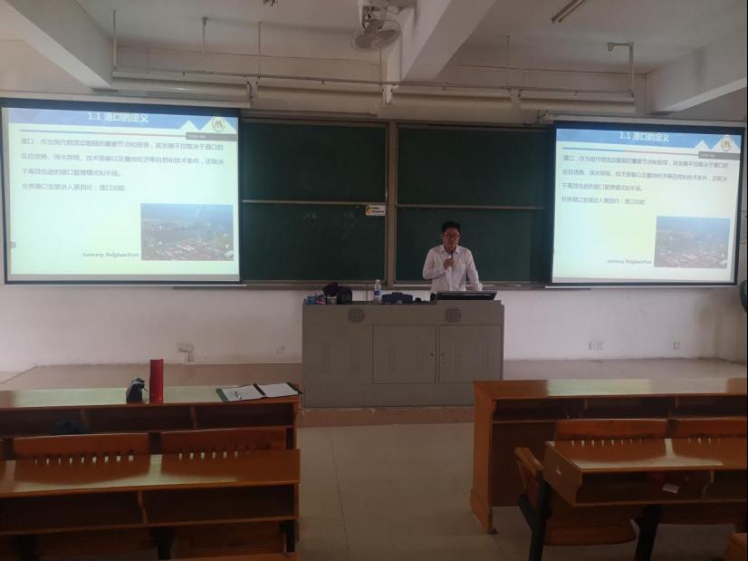 首先,吴经理向同学们提出了一个接地气的专业问题“麻涌是大陆、半岛还是岛屿”引起了大家广泛的兴趣,掀开了讲座的序幕。由身边的地理知识入手,吴经理向大家介绍了麻涌港的地理特点、发展历史以及深赤湾港务有限公司的建立和发展历程,突出麻涌港在全国散杂货港口中的重要地位和运营特点。