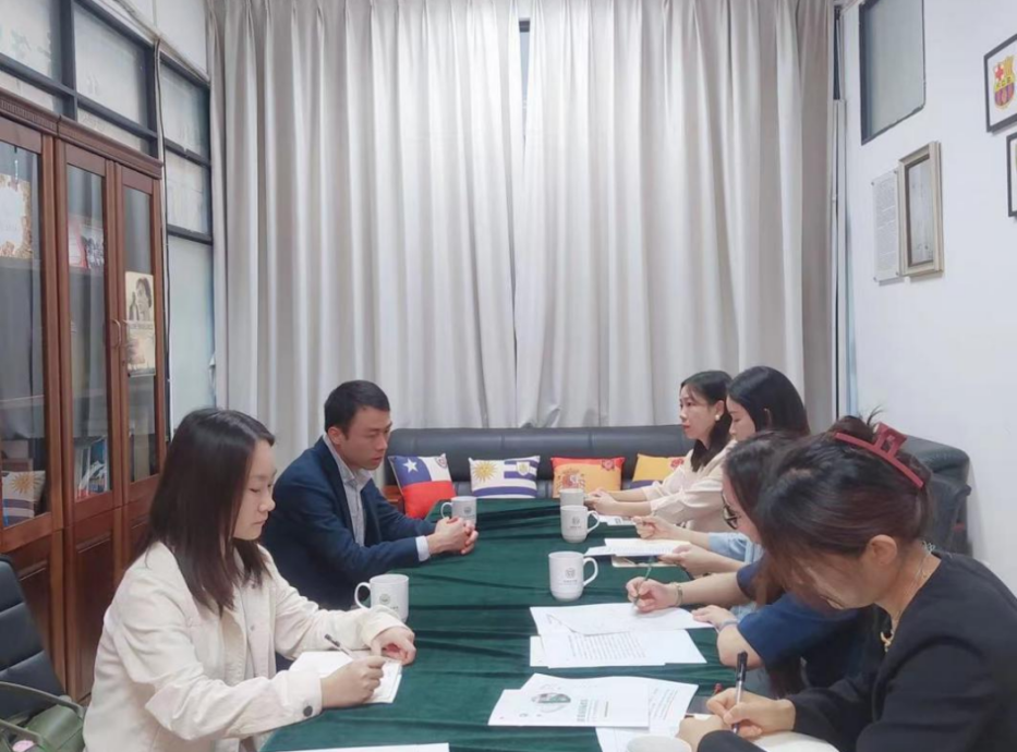 2023年10月12日下午,教育部中外人文交流中心“中欧教育人文交流服务计划”实施服务方一行来广州新华学院(以下简称“3044永利集团官网”)3044永利集团官网(以下简称“外院”)调研交流。外院副院长李文蓓、外院党总支副书记邢佳佳、3044永利集团官网外事处科长郑惠文和外院西班牙语专业教研室主任谢杭航、讴亚途国际教育代表罗亮总经理及杨玉玲项目主管参加了此次会议,本次会议由外院副院长李文蓓主持。