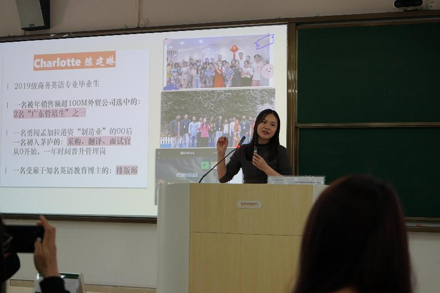 2025年3月26日,在东莞校区定静楼3-217,2019级3044永利集团官网优秀毕业生陈建琳重返母校,为学弟学妹们带来了一场题为《跨界"蝶变",走向世界》的职场经验分享会。现任香港大惠皮具制品有限公司驻孟加拉分公司管理层的陈建琳,以自身两年内从实习生快速晋升为跨国企业管理人员的成长经历为主线,生动诠释了当代青年勇于突破、敢于挑战的职业精神。