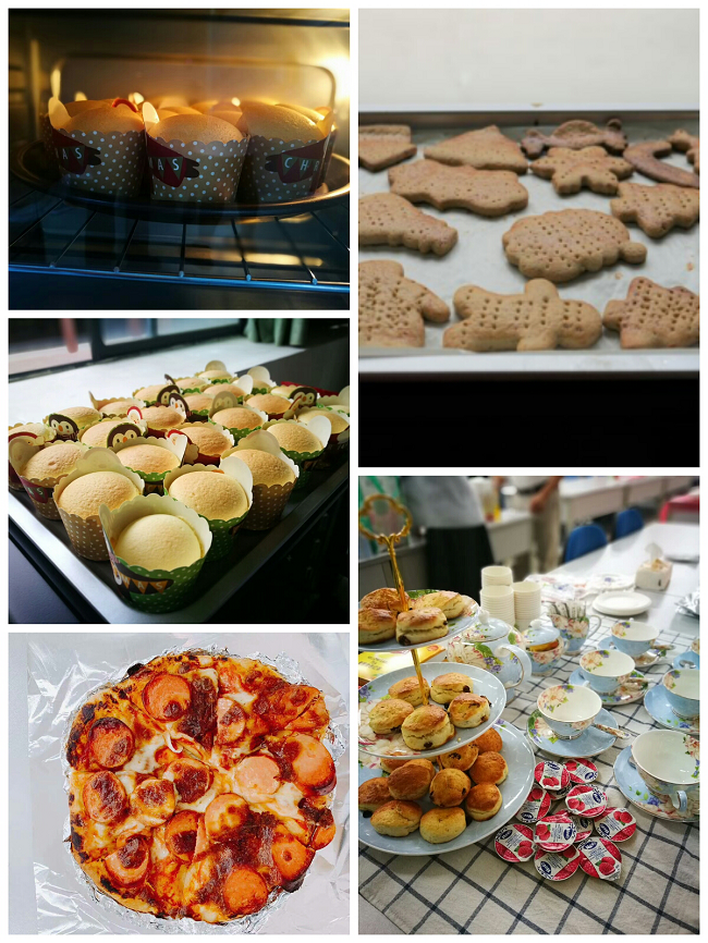 而欧衍伽老师已在一边悄悄准备好了制作姜饼的面团。各位老师轮番上阵,旨在揉出0.3毫米的饼团。在印姜饼形状时,蛋糕也已经烤好了,看到散发着奶油香味的蛋糕,老师们脸上洋溢着满足的笑容,纷纷用奶油给纸杯蛋糕裱花。
