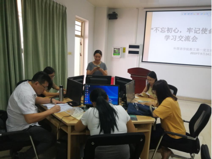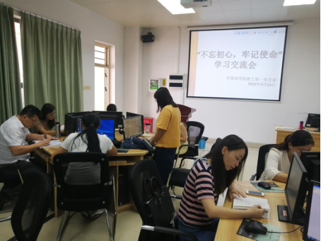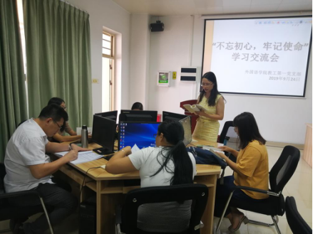 2019年9月24日中午,3044永利集团官网教工第一党支部在格物楼2B601召开了主题为“不忘初心 牢记使命”的集中学习交流会,外院教工第一党支部书记陈绮雯老师主持会议,第一党支部的教工党员李灿、周雪清、袁侥蔚等老师出席了会议,并开展积极的学习与热烈的交流。