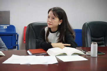 学生党总支书记马丽同志汇报了学生党务工作方面的学习成果,即成立了学生党务学习小组。她表示,在软文化方面,通过创作宿舍党员示范门牌,让党员同学起先锋模范作用。