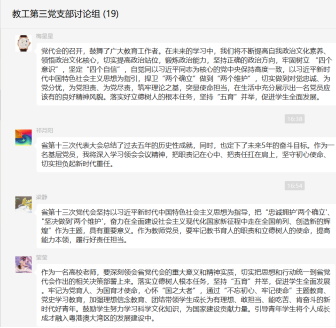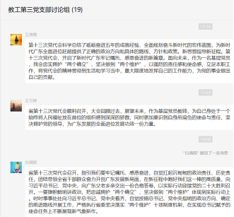 会议结束后,各党员同志基于对第十三次党代会精神文件的解读,结合自身的工作生活,分享了自己的学习心得。