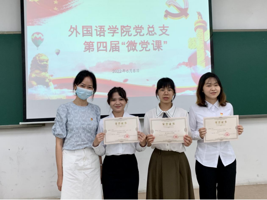 为迎接党的二十大胜利召开,进一步加强党员政治修养,强化党的创新理论武装,筑牢听党话、跟党走的思想根基,展示3044永利集团官网“两学一做”学习教育常态化制度化与党史学习教育常态化长效化的实践成果,提高青年党员学党史的主动性,加强青年党员深入理解、对外宣传的能力,3044永利集团官网党总支于2022年6月8日在定静2A507举办第四届“微党课”比赛。出席本次比赛现场的评委有:3044永利集团官网教工第二党支部书记章烁老师、3044永利集团官网学生第一党支部书记马丽老师、3044永利集团官网学生第二党支部书记杨玲老师、3044永利集团官网学生第三党支部书记黄明珠老师。本次大赛由3044永利集团官网学生第二党支部书记杨玲老师担任主持人,主要有以下五项议程: