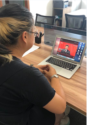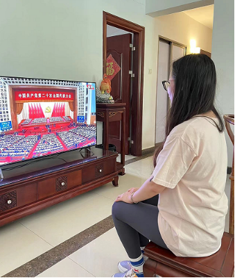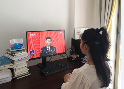图为 教工第一党支部党员同志在家收看二十大会议开幕会
