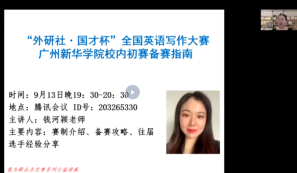 图2 钱河颖老师主讲写作大赛初赛备赛指南