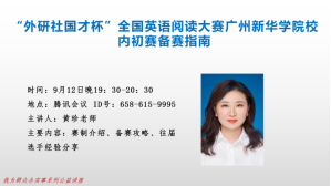 图1 黄珍老师主讲阅读大赛初赛备赛指南