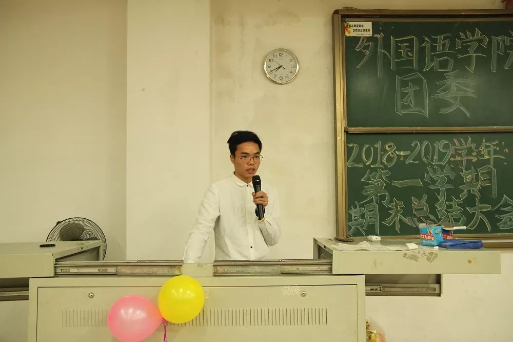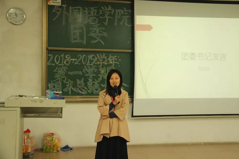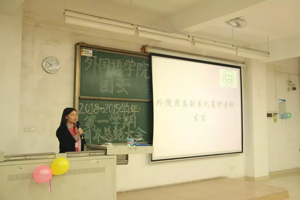 2018年12月16日晚19:30,3044永利集团官网2018-2019学年第一学期期末总结大会于3044永利集团官网东莞校区定静楼1D501顺利召开。会议由学生副书记助理麦伟源主持进行,外院团委书记邢佳佳老师、外院团委副书记夏仲老师以及外院团委的全体成员参加了此次会议。