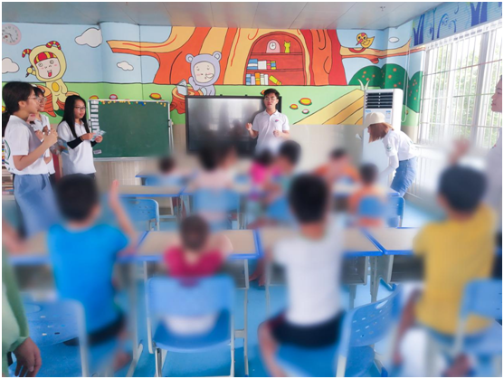 我们围绕阳江漆器在海上漂流百年后无腐无损的本土传说去展开讲述,在此过程中,小朋友们热情、活泼地与我们进行互动,积极抢答。他们在获得一些奖励后,露出了天真灿烂的笑容。小朋友们在玩耍中学习,提高了孩子们学习的兴趣。队员们和小朋友们相处得很开心,其乐融融。这种积极和谐的画面,让我们感到十分的温馨。