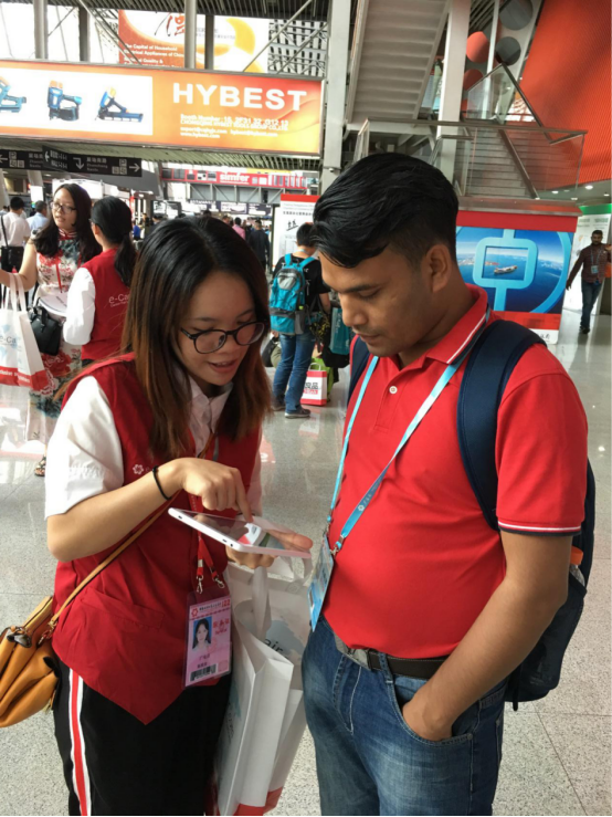 【15商英陈雅倩同学正指引采购商去往供应商所在地点】