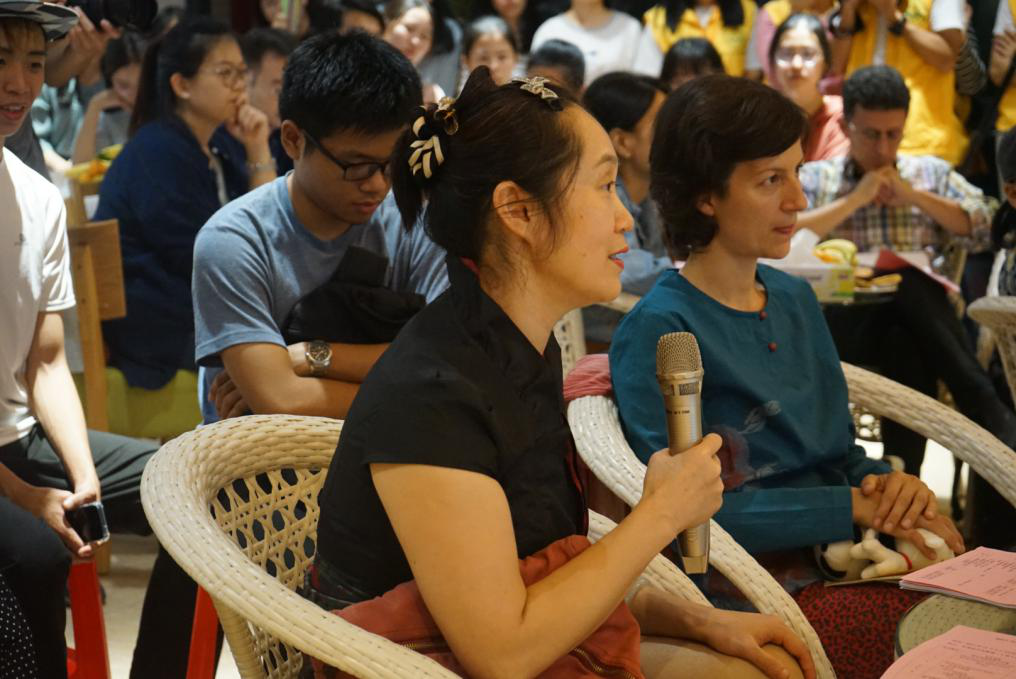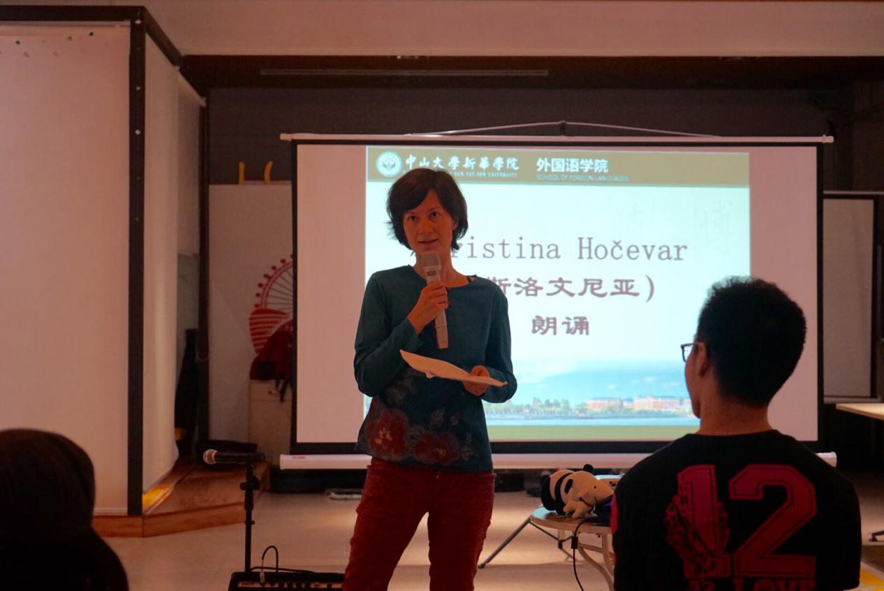 来自斯洛文尼亚的作家Kristina Hočevar深情朗诵了她的个人代表作品锦集。伴随着缓慢而动听的钢琴声,她富有韵律的朗诵让大家一下子便陶醉其中,回味无穷。来自荷兰的 Hans Maarten van den Brink则朗诵了自己的个人作品“On the River”,其富有磁性的声音使在座听众非常自然地跟随他的脚步走进了属于他的文学世界。美国作家Luis Francia接连朗诵了A Fool’s Clarity、Dream of the Ascetic等5首个人作品,其风趣幽默的语言更是引得现场观众笑声不断。