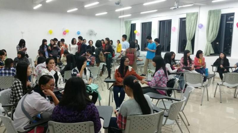 2014年11月6日晚,百思英语协会英语角于东莞校区教2A507举办,出席本次英语角的嘉宾是外教Maria和Zach。本次英语角除了给在场的观众带来来自英语的奥妙之外,还带来了无尽的欢愉。英语角singles’ day,为百思带来了不一样的精彩。