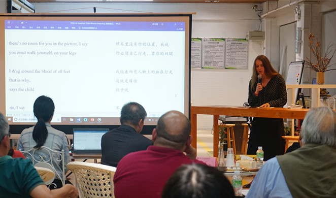 来自挪威的作家Monica Aasprong朗诵了An Invented Child和Circle Psalm两首作品,给嘉宾们留下了深刻的印象。来自菲律宾的作家Charlson Ong朗诵了自己十年前发表的Banyaga:A song of War(Chapter2:Customs House Boy&Chapters3:Early Mourning)。两位作家的诗歌抑扬顿挫的节奏感、极富有韵律的美感和令人发醒的作品让在场的师生深陷其中,回味无穷。