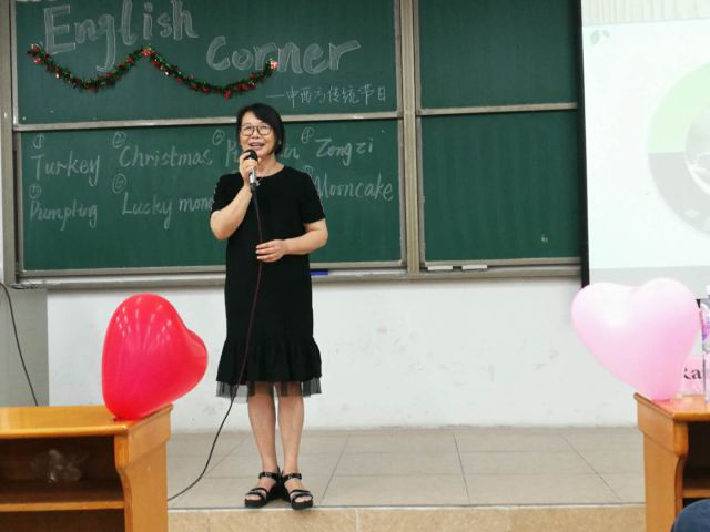 紧接着,3044永利集团官网邱易安教授上台分享自己的传统节日发生的趣事。同时,邱易安教授指出,英语角活动的开展,有助于同学们锻炼口语,同学们应该充分利用这个平台。此外,她表示,学习英语,只说不练是假把式,同学们需要勤加练习。