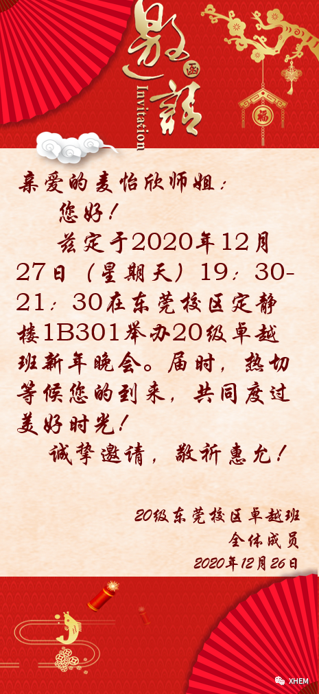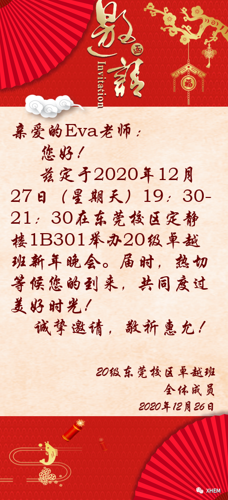 “很高兴认识你,我也来自2020级东莞卓越英语创新班(下称卓越班),请问,我可以知道你的名字吗?”