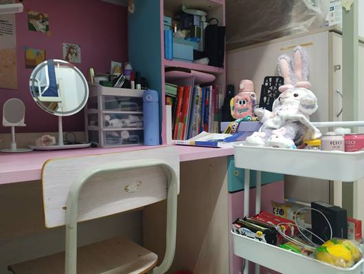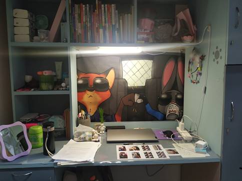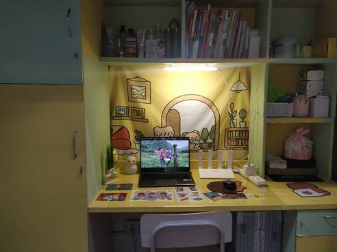 宿舍里的每个角落都被精心布置,风格整体简单而又不失温馨。