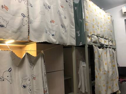 427宿舍是一个充满爱与正能量的宿舍,他们用简洁的床帘营造出舒适的环境。