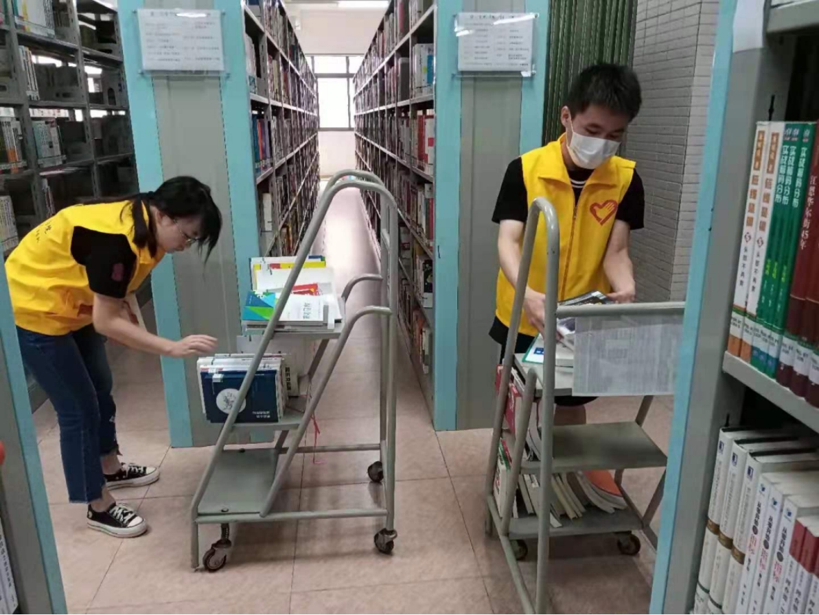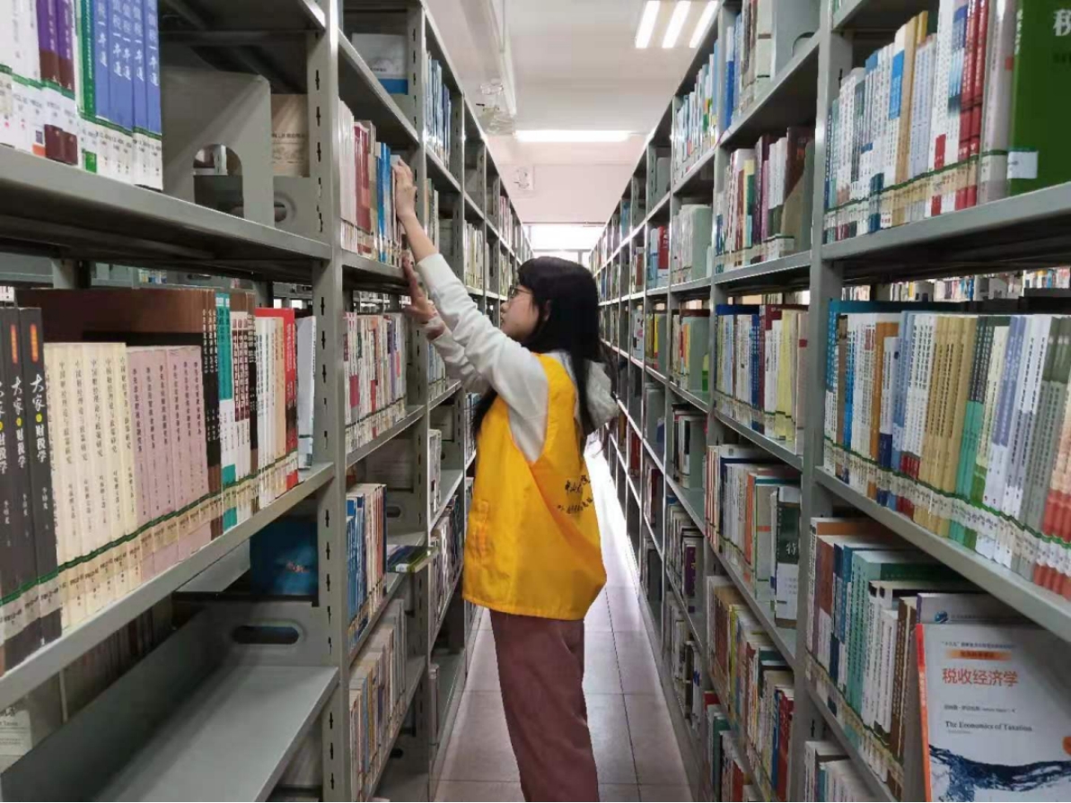 书库是学生自主学习查阅资料的地方,保持室内整洁十分必要。志愿者们轻轻地进入书库,尽量不打扰同学们学习。