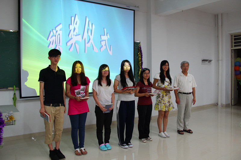本次竞赛分初赛和决赛两场,来自全院共12个代表队进入决赛。决赛分必答题、抢答题和猜答题三个环节。两位主持人轻松幽默的主持风格使得比赛现场气氛活跃,赛程安排井然有序。选手们准备充分,在必答题环节各自都展示出对欧美文化知识丰富的积累;而在紧张刺激的抢答环节中,选手们所表现出的沉着冷静更是让现场观众称赞不已;最后,图片猜答环节各组选手绞尽脑汁、四肢并用,搞笑夸张的表演将整场比赛的气氛推向了高潮。历经两小时的激烈角逐,最终11级英语专业H班代表队成功夺得桂冠。特邀嘉宾为获奖代表队颁发奖状、奖品,合照留念。