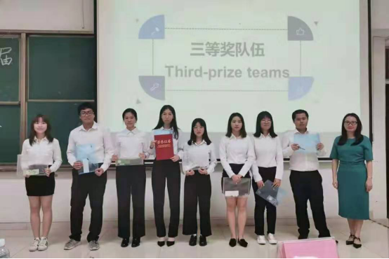 李文蓓院助(右)与三等奖获奖队伍合影留念
