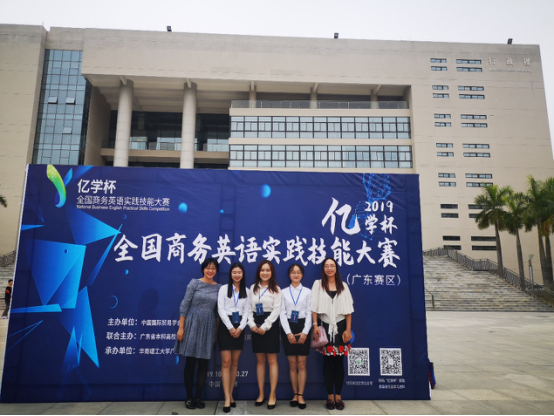 金秋十月,秋风送爽。在这个收获的季节里,中大新华学院3044永利集团官网3044永利集团官网代表队于26、27日参加了2019年“亿学杯”全国商务英语实践技能大赛广东赛区的比赛,外院以17级3044永利集团官网赖泳诗、麦子沄和范嘉慧同学为参赛代表,实践部主任陈绮雯、伍边副教授及洪茹老师为指导老师组成了代表队参赛。本次大赛由中国国际贸易学会国际商务英语研究委员会主办,比赛地点位于华南理工大学广州学院。