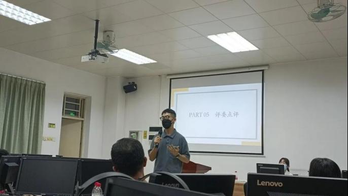 选手们演讲结束后,评委们进行点评。邱泽林老师鼓励了选手们,接着对本次演讲的题目进行了分析与总结,并给了选手们一些关于演讲的专业性指导。李明娇老师对选手们的表现给予了充分肯定,同时也指出了不足之处,并在辩题理解、辩论技巧、知识储备等方面提出了指导意见。
