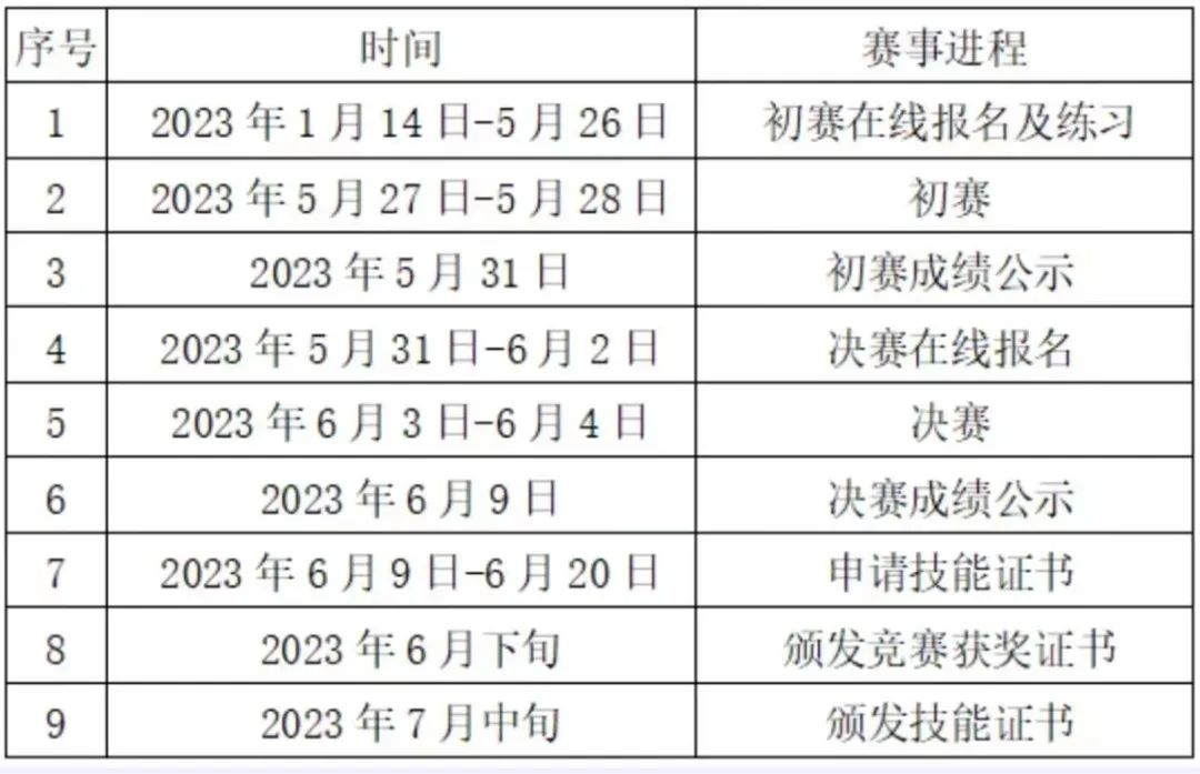 2023年6月3日~4日,竞赛场次时间安排另行通知。